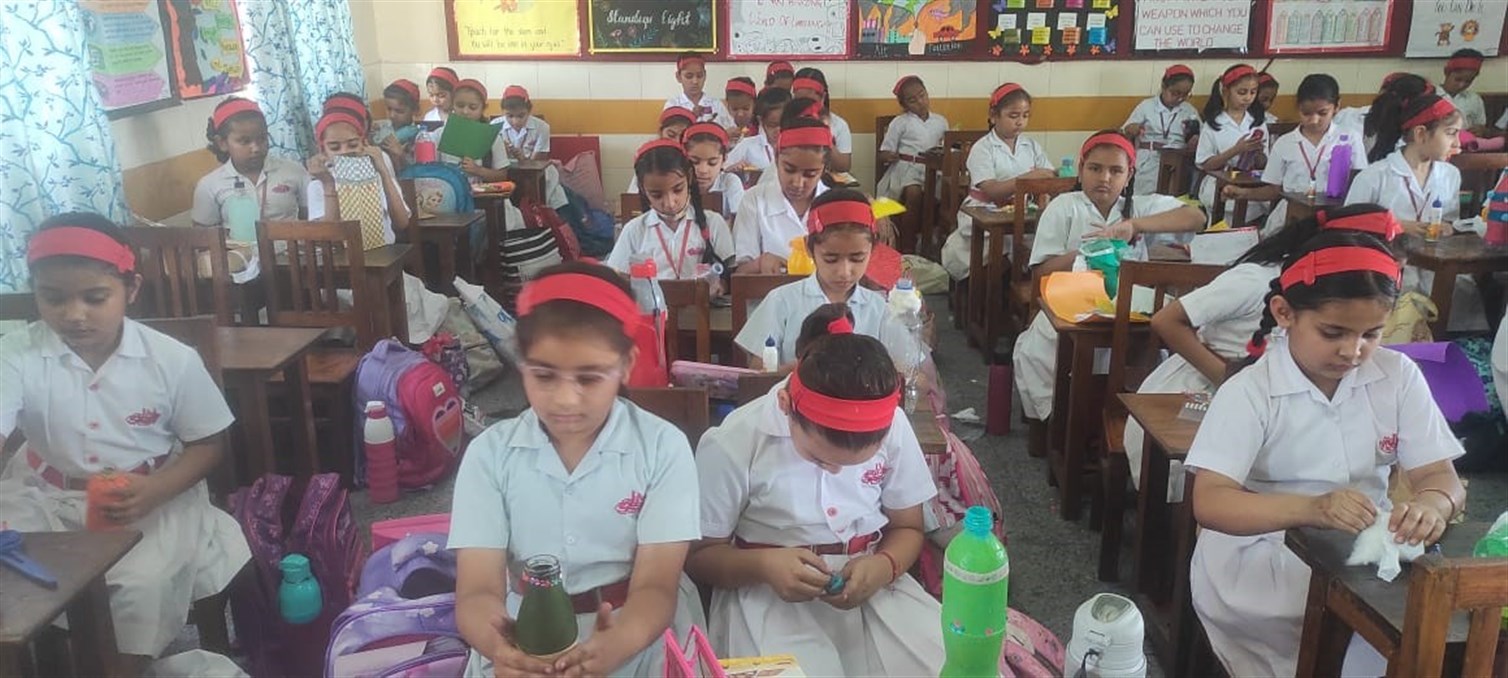 Skill based activity was conducted for the students of Std. III, students learned Bottle decoration.
