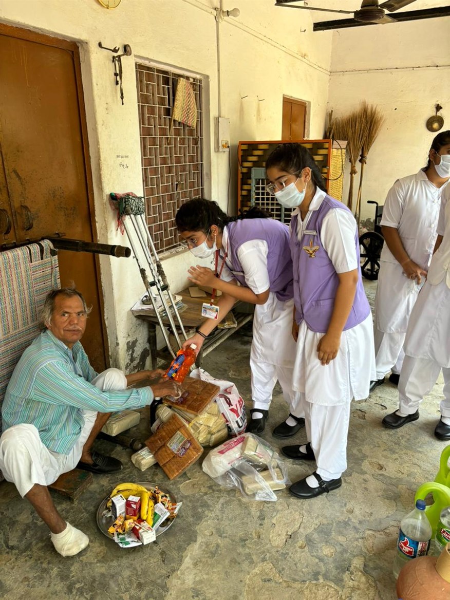 Six students of the newly elected student council along with Mrs. Renelle Rosemeyer went to leper’s asylum (Kushth Ashram) to share happiness through distributing essential items to residents of the ashram. They gave cough syrups, antiseptic creams, bandages, sevelon bottles, ORS packets and fruits.