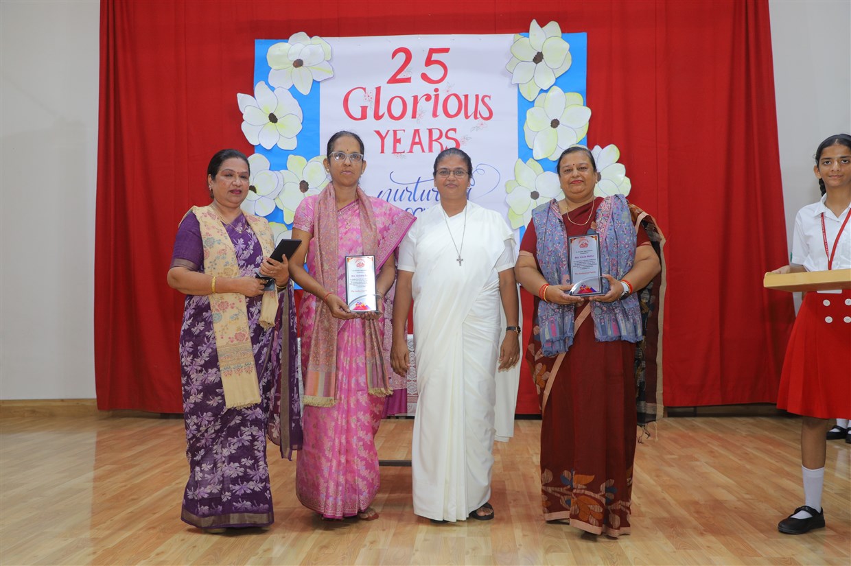 We celebrated the Silver Jubilee of Mrs Vidula Mathur Mrs Anupam Sharma and Mrs Archana Gaur honouring 25 years of dedicated service to the institution